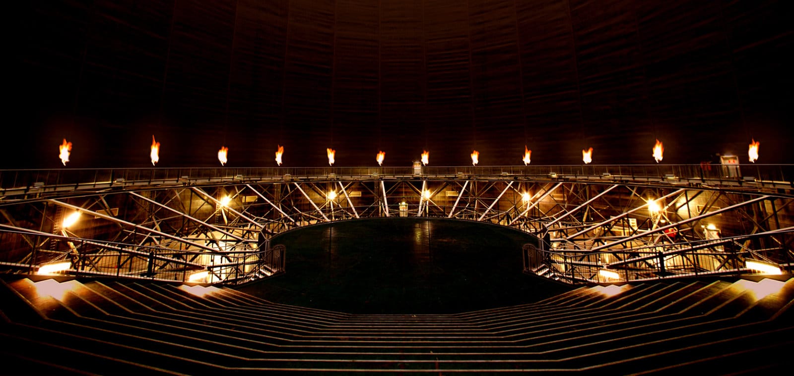 Mit Medienservern und drei überdimensionalen Leinwänden verwandeln wir den ehemaligen Gasspeicher in einen Kinosaal